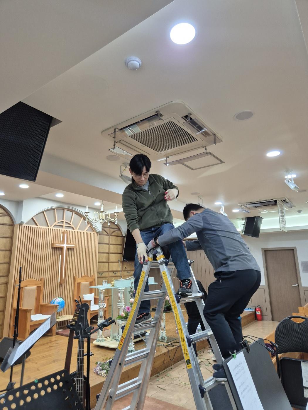 크리스마스 트리 설치!, 교회 에어컨 청소 봉사^^